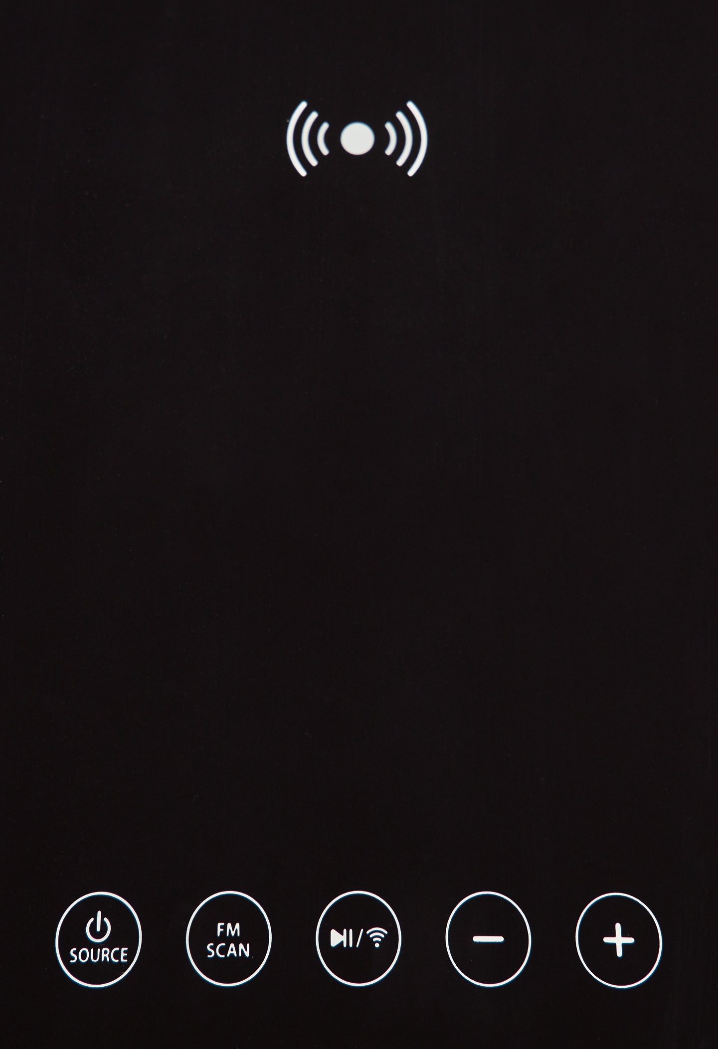 | Details | Made with solid and engineered wood and metal, Black finish on metal and wood, Glass top, Gray polyester fabric on sides, Tabletop with wireless charging and touch-button controls, 6.5" full-range speaker and 2" tweeter speaker, Wireless connection; FM antenna; aux input; USB charging port, Fixed shelf, Assembly required | |
