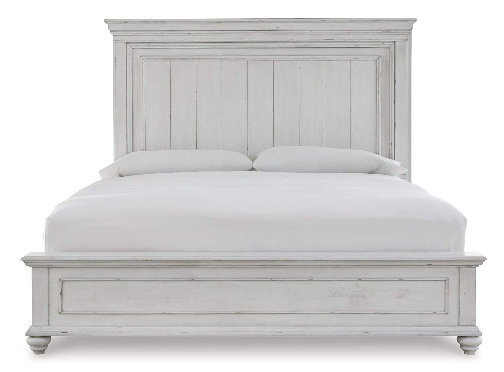 Give your retreat vintage charm with this queen panel bed. In a beautifully distressed whitewash finish, you'll love the headboard's grand style featuring a picture framed panel. Generously scaled moulding from top to bottom, along with bun feet give this bed character—evoking the feel of a quaint cottage escape.