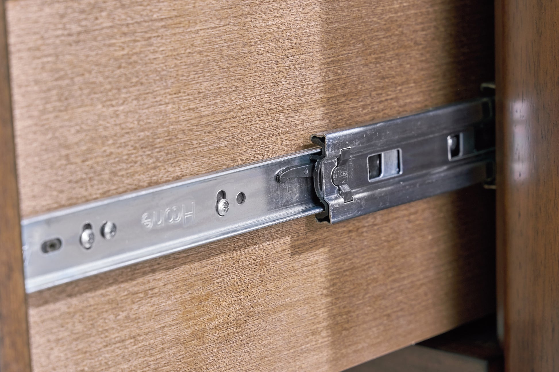 | Details | Made with hardwood solids, mango wood veneer and MDF substrates, Medium brown wood-tone finish, 5 drawers with fully finished interior, dovetail construction and heavy duty ball-bearing side glides, Round tapered legs | |